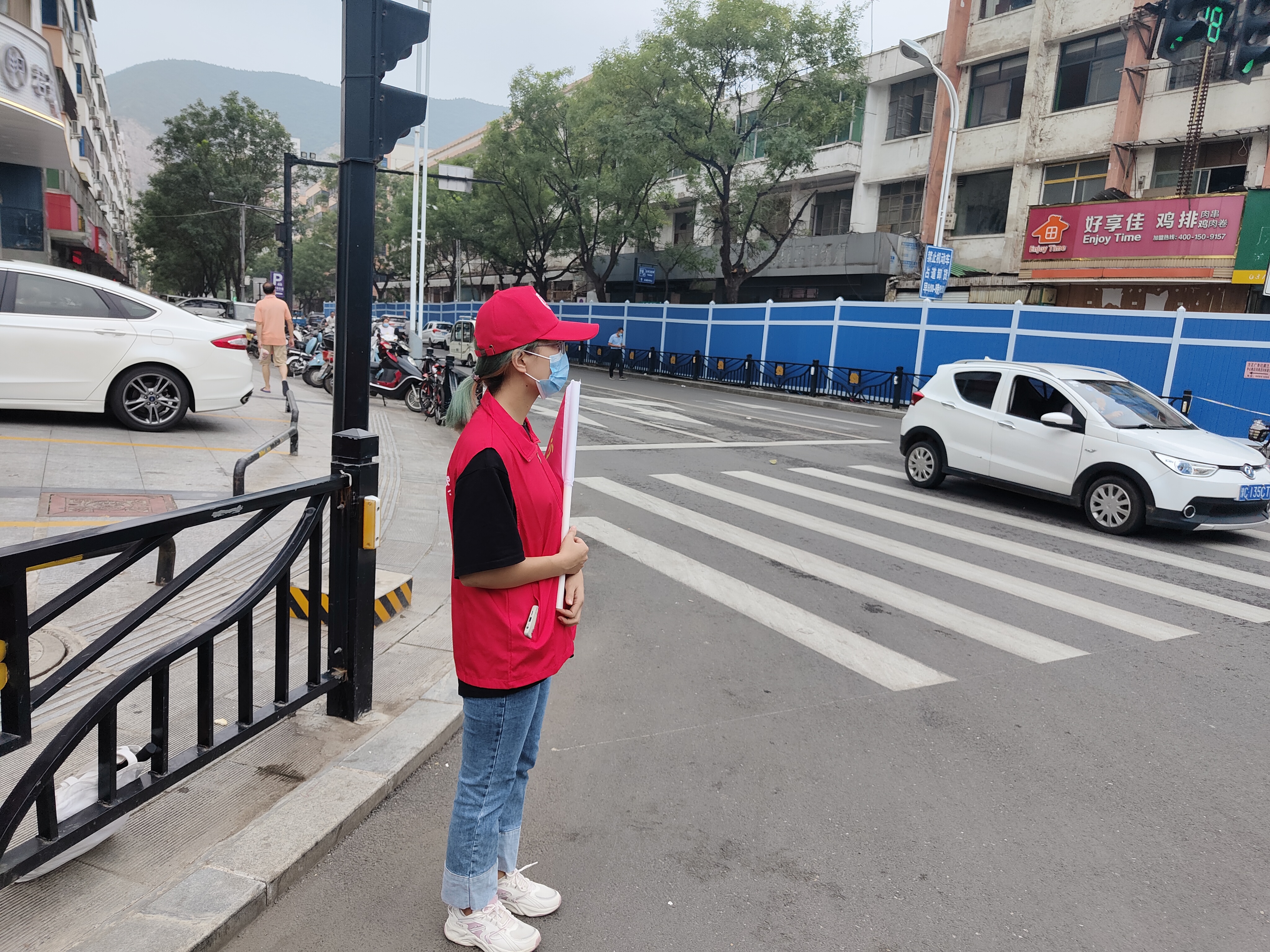 8月20日-21日,黃河同力組織干部職工前往宜陽(yáng)縣人民路與紅旗路口,進(jìn)行疫情防控勸導(dǎo)志愿服務(wù)活動(dòng)。在活動(dòng)中,黃河同力志愿服務(wù)隊(duì)的志愿者們頭戴小紅帽,身穿志愿服,手拿小紅旗,勸導(dǎo)群眾佩戴口罩,引導(dǎo)群眾注意排隊(duì)距離,并向沒(méi)帶口罩的群眾發(fā)放口罩。